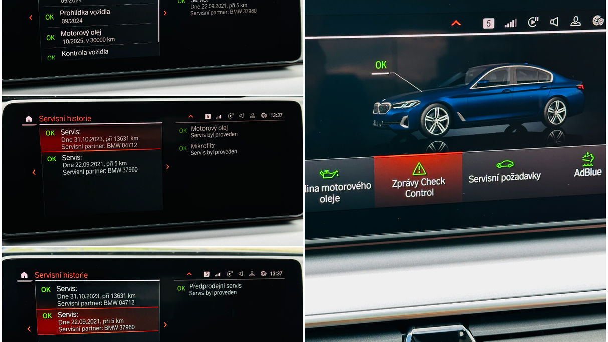 Krásná 530d xDrive v Individual barvě Tanzanite Blue v BMW tovární záruce do 10/2024. Nelakovaná, nehavarovaná, na všech panelech původní tloušťka laku do 130 mikronů. Nekuřácký interiér, špičkový stav. Výbava: Adaptivní laser světla vysvtiňováním protijedoucích aut, nezávislé topení, komfortní sedadla s největším rozsahem nastavení, Driving Assistant Professional (držení v pruzích se samořízením + adaptivní tempomat + sledování slepého úhlu), Parking Assistant (couvací kamra, samoparkování, varování před příčným provozem), panoramatická střecha, Live Cocpit Professional s iDrive 7, hifi audio, integrální natáčení zadní nápravy, soft-close, Head-up display, vyhřívané sedadla i vzadu, vyhřívaný volant, komfortní bezklíčkový přístup, elektricky ovládaný kufr, 4-zónová klimatizace, display Key. Interiér voní kůží, nekuřácký.