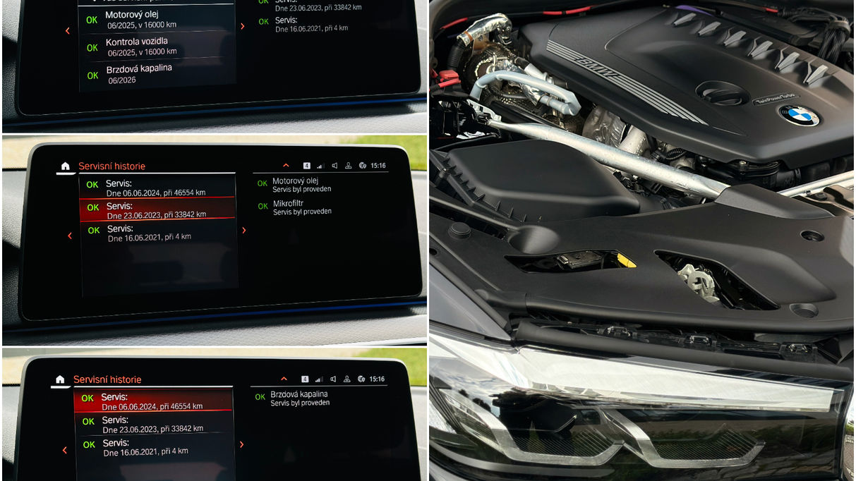 BMW 530d xDrive Touring v barvě Sapphire Black. Nehavarované, na všech panelech původní lak do tloušťky 130 mikronů. Hlavní výbava: M Sport Paket, M Sport modré brzdy, adaptivní tempomat s funkcí popojíždění v kolonách, sportovní M Sport sedadla v alcantaře s výhřevem, elektrický kufr, 4-zónová klimatizace, Parking Assistant (couvací kamera, varování před příčným provozem), LED světla, sportovní převodovka s pádly pod volantem, ambientní osvětlení, Live Cocpit Professional s iDrive 7 s Apple CarPlay/Android Auto, DAB digitální tuner rádia, bezdrátová nabíječka telefonu, Connected Drive Services, Business Paket.