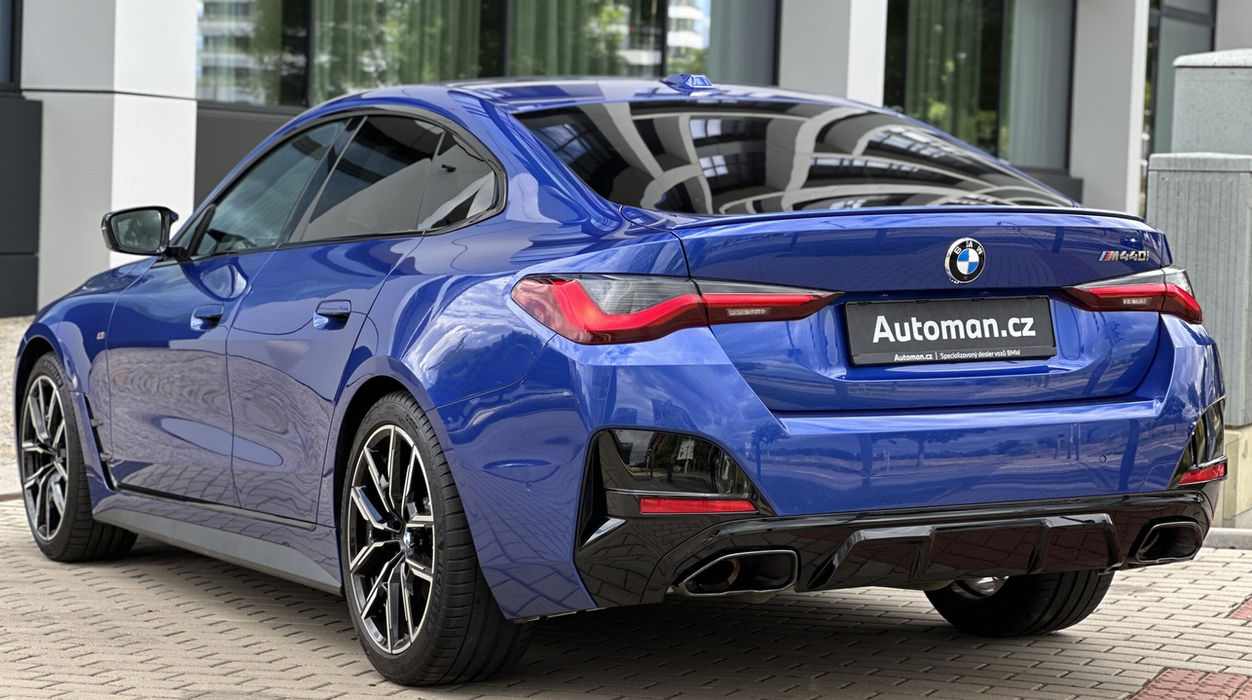 Krásné roční BMW M440i xDrive v metalické barvě Portimao Blue. BMW tovární záruka do 6/2027. Nelakované, nehavarované, na všech panelech původní lak. M podvozek, M Sport diferenciál, špičková M sedadla s největším rozsahem nastavení, Driving Assistant Professional (držení v pruzích se samořízením + adaptivní tempomat + sledování slepého úhlu, varování před příčným provozem), Parking Assistant Plus (4 kamery a 360° ptačí pohled, samoparkování, varování před příčným provozem), panoramatická střecha, Harman Kardon audio, LED světla, M Sport výfuk, head-up display, vyhřívané sedadla i vzadu, key-less, elektrický kufr, M Sport brzdy, bezdrátová nabíječka telefonu, Apple CarPlay/Android Auto, Shadowline černé doplňky. Možný odpočet DPH a financování.