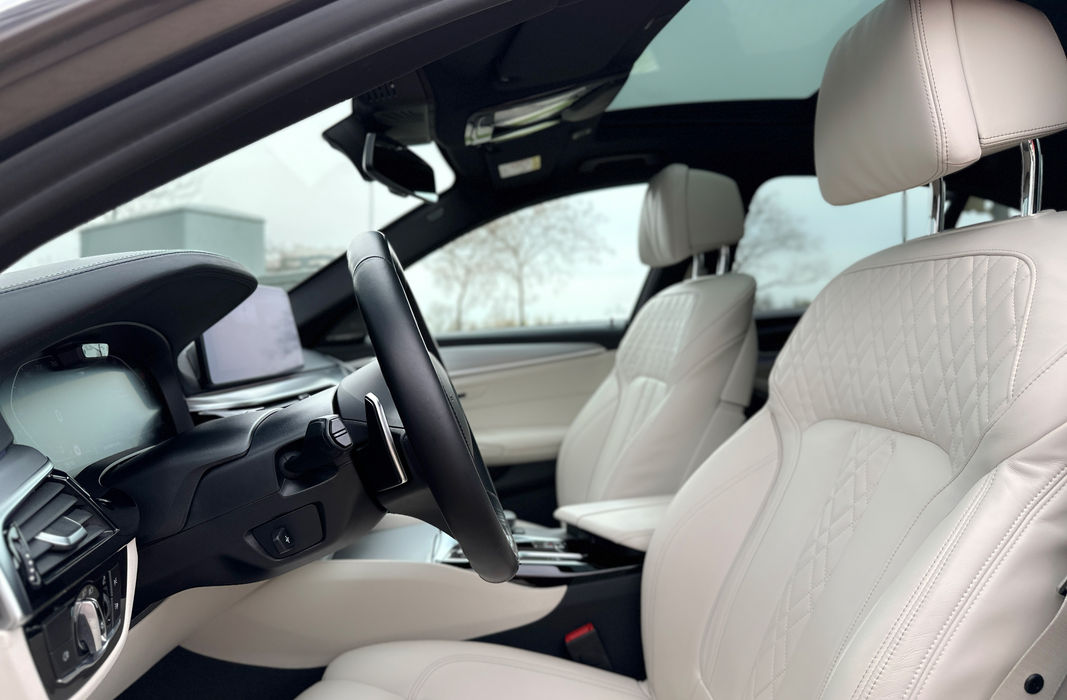Krásné BMW 530d xDrive ve vzácné metalické barvě Alvit Grey. Nelakované, nehavarované, na všech panelech původní lak. Hlavní výbava: špičková komfortní sedadla s největším rozsahem nastavení v jemné Nappa kůži, M Paket, špičková laser světla s vystiňováním protijedoucích aut, Driving Assistant Professional (držení v pruzích se samořízením + adaptivní tempomat + sledování slepého úhlu, varování před příčným provozem), Parking Assistant (couvací kamera, samoparkování, varování před příčným provozem, couvací asistent), Harman Kardon audio s DAB tunerem, head-up display, soft-close, integrální natáčení zadní nápravy, vyhřívané sedadla i vzadu, pravá kůže na palubce, nezávislá ventilace, vyhřívaný volant, bezklíčkový přístup, elektrický kufr, 4-zónová klimatizace, ambient lights, Shadowline světla a černé doplňky, Live Cocpit Professional s iDrive 7. Vnitřek voní kůží, nekuřácký. Auto k vidění u nás v Praze-Karlíně.