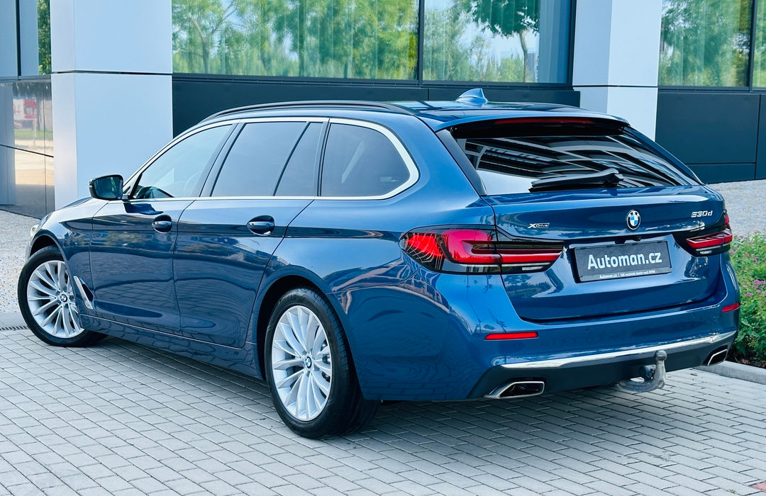 Krásná 530d xDrive Touring Luxury ve vzácné barvě Phytonic Blue. Nelakovaná, nehavarovaná, na všech panelech původní tloušťka laku do 130 mikronů. Nekuřácký interiér, špičkový stav. Výbava: Adaptivní laser světla vysvtiňováním protijedoucích aut, originální el. tažné zařízení, Driving Assistant Professional (držení v pruzích se samořízením + adaptivní tempomat + sledování slepého úhlu), Parking Assistant Plus (4 kamery a 360° ptačí pohled, samoparkování, varování před příčným provozem), Head-up display, Apple CarPlay/Android Auto, komfortní bezklíčkový přístup, elektricky ovládaný kufr, 4-zónová klimatizace, palubní deska v kůži, Live Cocpit Professional s iDrive 7, Hifi příplatkové audio, vyhřívaná sedadla i vzadu. K vidění u nás v Praze-Karlíně.