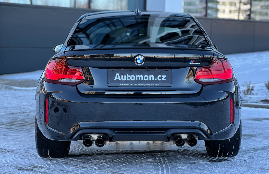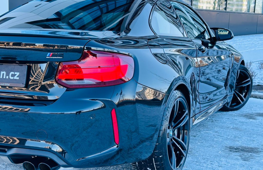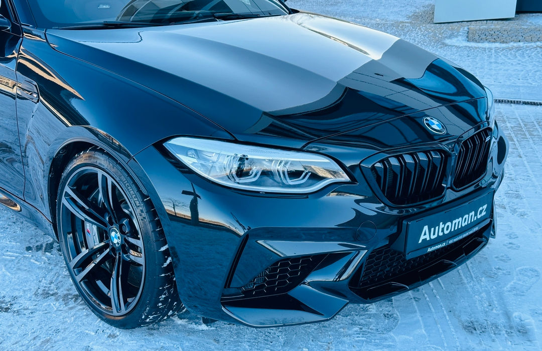 Krásná M2 Competition DCT Sapphire Black. Najeto 23 158 km, registrace 5/2021 a stále v plné tovární BMW záruce do 5/2024.. Nehavarovaná, nelakovaná, na všech panelech původní tloušťka laku 110-130 mikronů. Z hlavní výbavy: M Sport velké brzdy, M Sport sedadla, Harman Kardon audio, Komfortní bezklíčkový přístup, Couvací kamera. vyhřívaný volant, Driving Assistant, Apple Carplay + DAB tuner. Auto nebylo nikdy na okruhu. Na M2 není ani jeden škrábanec nebo důlek od cizích dveří, nebyla nikdy v kartáčích a interiér je samozřejmě nekuřácký a v moc pěkném stavu. Kůže a volant hezky matné. Všechna kola bez odření nebo škrábance. Záběhovou výměnu oleje na 2tis. km auto samozřejmě nevynechalo, druhý olej s filtry mělo po roce v 11 tis. km. K autu je možné přidat zimní 19´ sadu Styling 641 s Pirelli Sottozero 3, nyní je auto na letních Michelin Pilot Super Sportech.